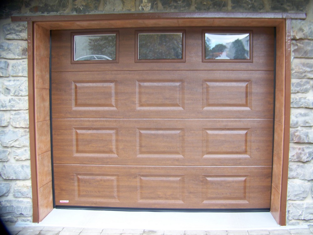 Sekčná garážová brána s kazetovými prelismi a okienkami- realizácia Piešťany